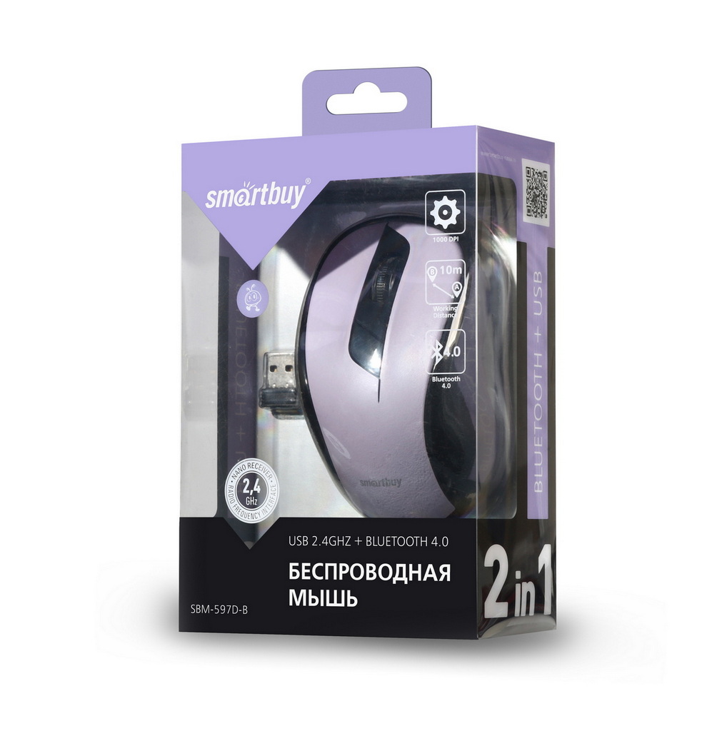 Мышь беспроводная Dual Bluetooth+USB Smartbuy SBM-597D-B Ниагара (SBM-597D-B)/40/