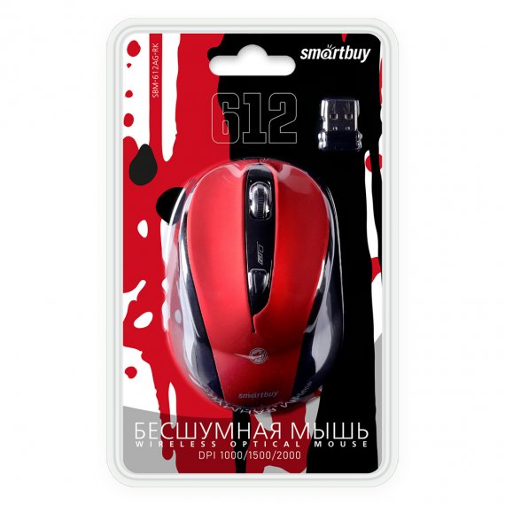 Мышь беспроводная беззвучная Smartbuy 612AG красная, LED Blue (SBM-612AG-RK)/40/