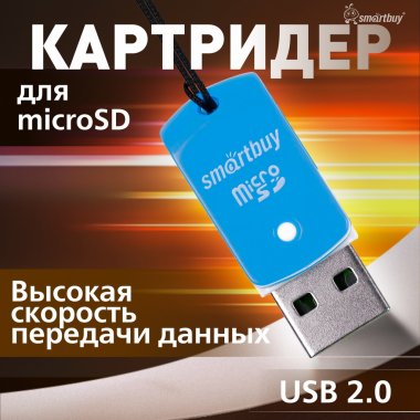 Картридер Smartbuy 706, USB 2.0 - MicroSD, голубой (SBR-706-B)