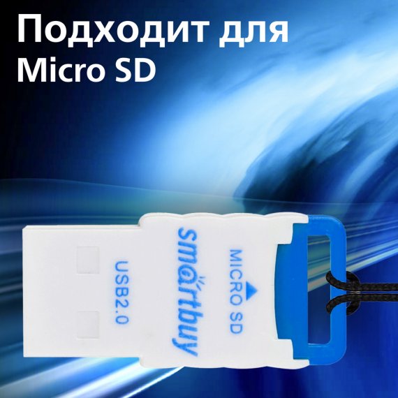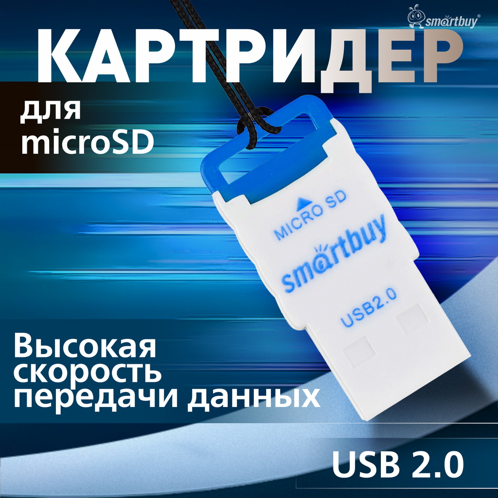 Картридер Smartbuy 707, USB 2.0 - MicroSD, голубой (SBR-707-B)