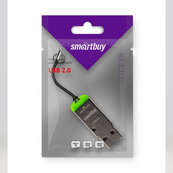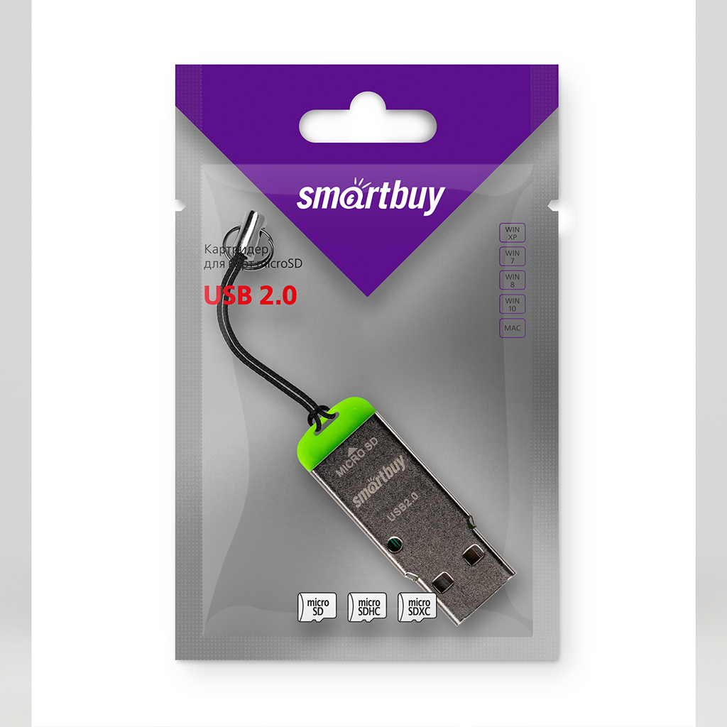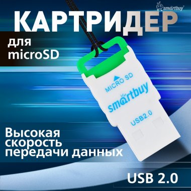 Картридер Smartbuy 707, USB 2.0 - MicroSD, зеленый (SBR-707-G)