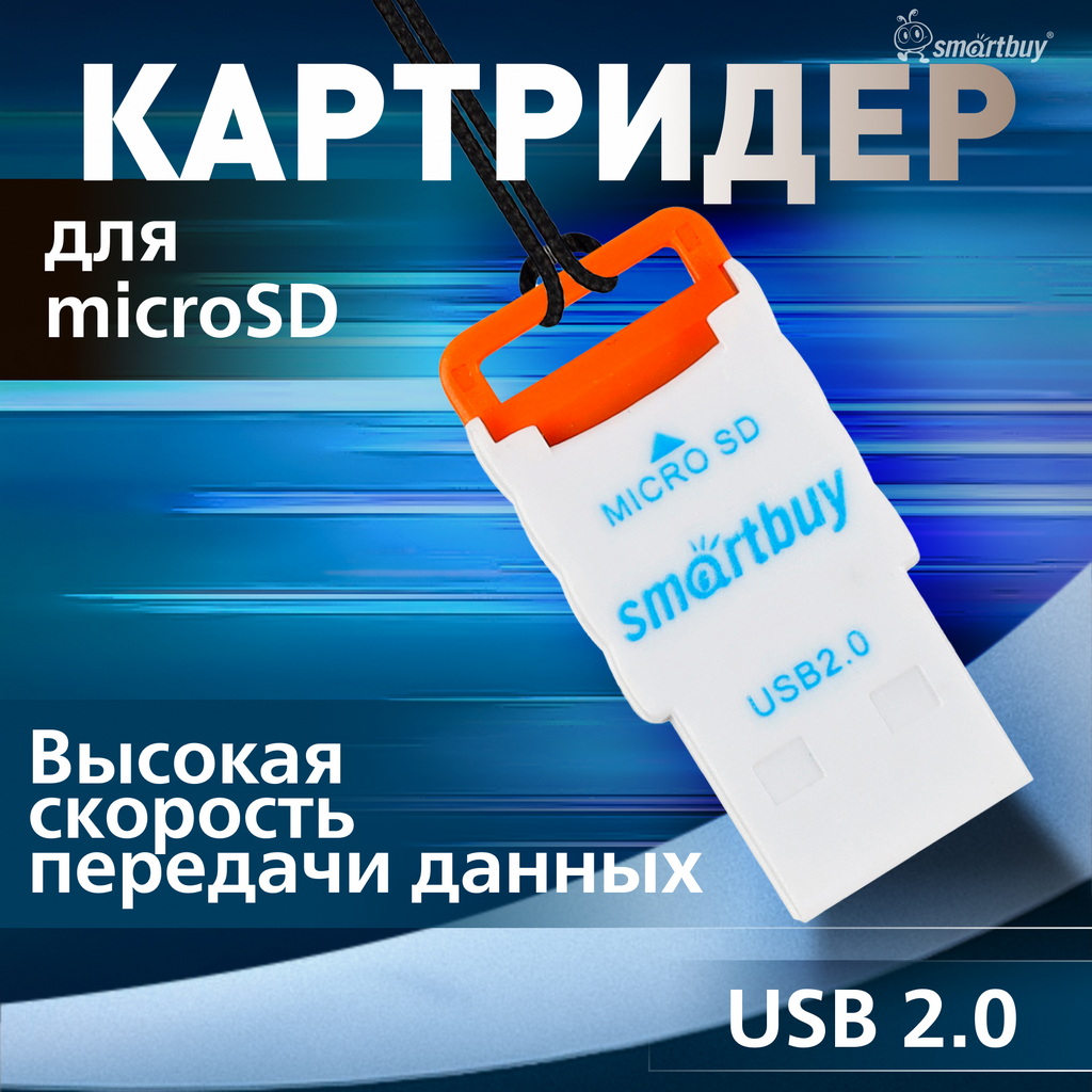 Картридер Smartbuy 707, USB 2.0 - MicroSD, оранжевый (SBR-707-O)