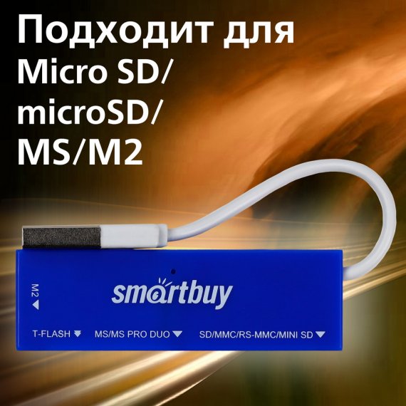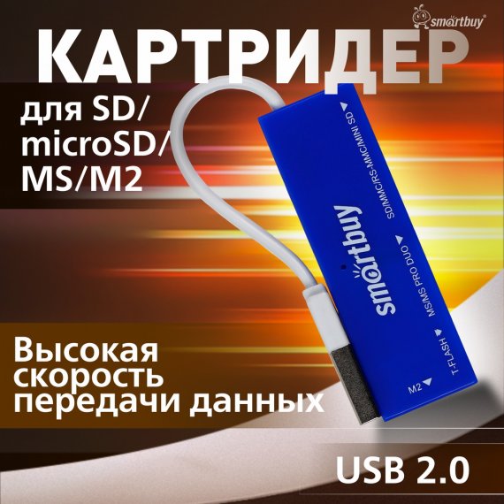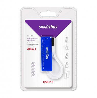 Картридер Smartbuy 717, USB 2.0 - SD/microSD/MS/M2, голубой (SBR-717-B)