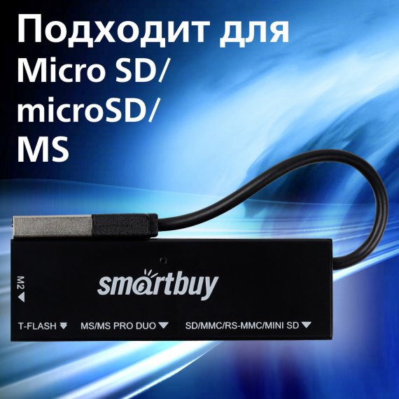 Картридер Smartbuy 717, USB 2.0 - SD/microSD/MS/M2, черный (SBR-717-K)