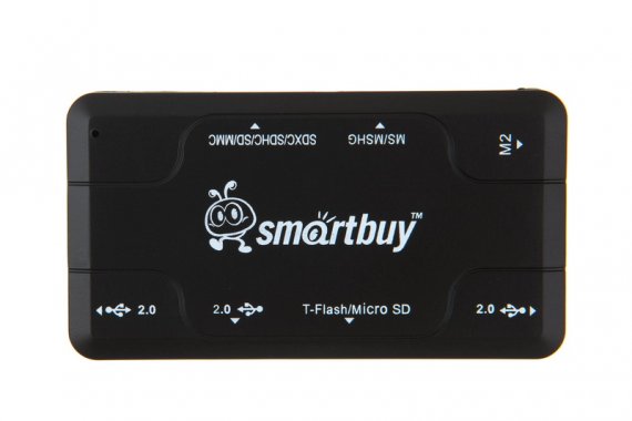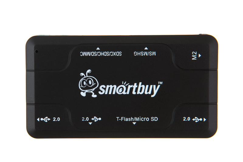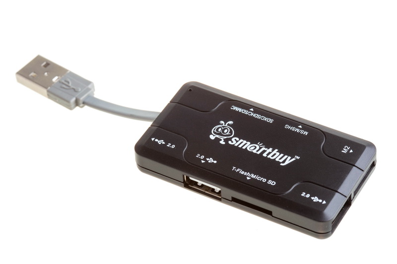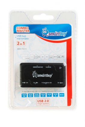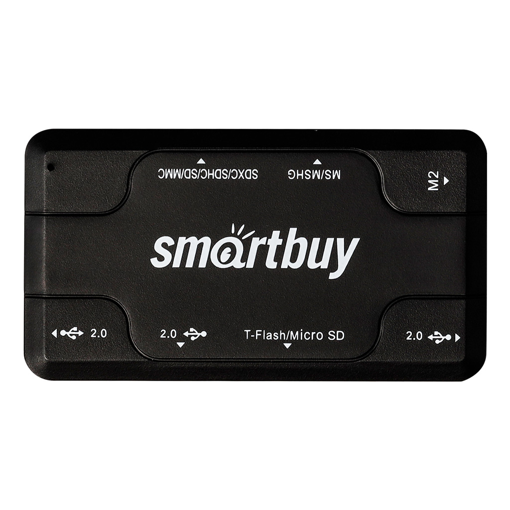 Картридер + Хаб Smartbuy 750, USB 2.0 3 порта+SD/microSD/MS/M2 Combo, черный (SBRH-750-K)