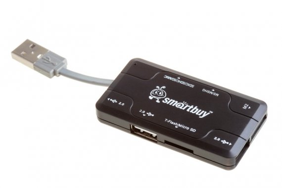 Smartbuy SBRH-750-K Картридер + Хаб 750, USB 2.0 3 порта+SD/microSD/MS/M2 Combo