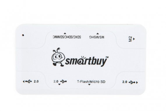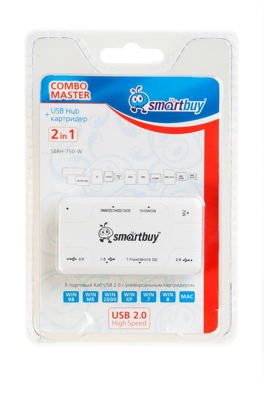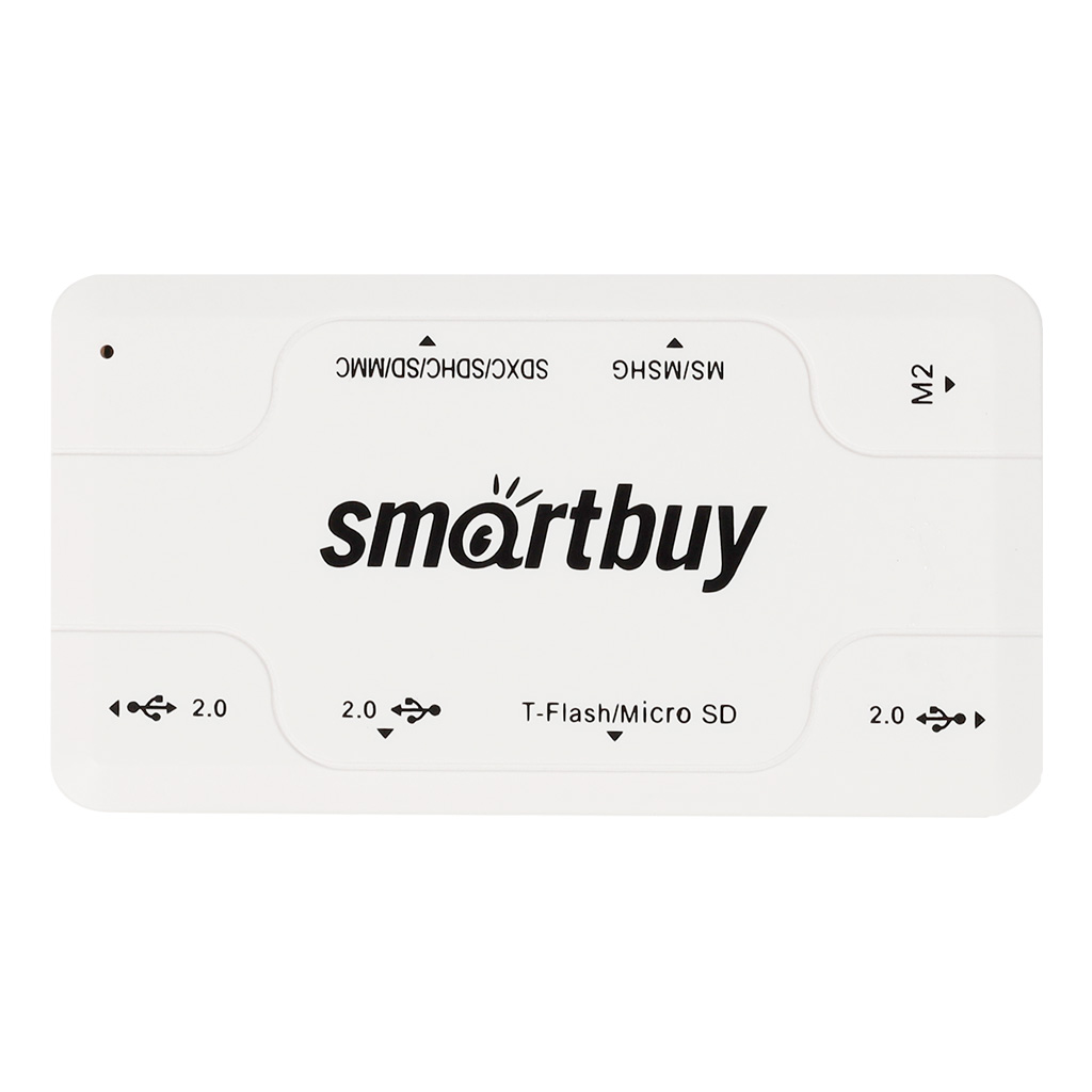 Картридер + Хаб Smartbuy 750, USB 2.0 3 порта+SD/microSD/MS/M2 Combo, белый (SBRH-750-W)
