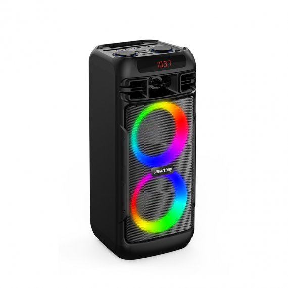 Акустическая система 2.0 SmartBuy MEGA BOOM 2 обладает мощностью 50 Вт и поддерживает беспроводное соединение по Bluetooth, что позволяет воспроизводить музыку прямо со смартфона или планшета без использования проводов. Также есть возможность воспроизведения MP3 файлов и прослушивания FM радиостанций. Эта модель оснащена двумя микрофонами и пультом дистанционного управления, что делает ее отличным выбором для проведения различных мероприятий.