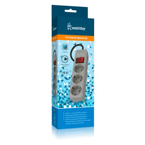 Smartbuy SBSP-3-30-G Сетевой фильтр 16А, 3500 Вт, 3 гнезда, без з/ш, с з/к