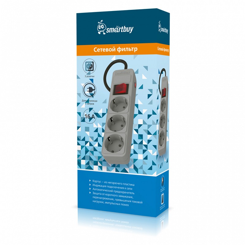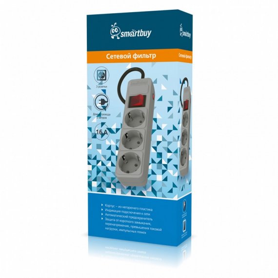 Сетевой фильтр SMARTBUY - это надежное решение для защиты вашего оборудования от скачков напряжения. Он оснащен тремя розетками и длинным 5-метровым кабелем, который обеспечивает гибкость в использовании.