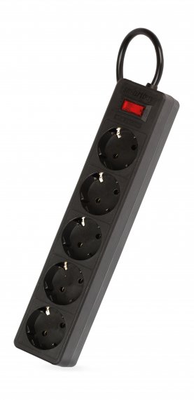 Сетевой фильтр Smartbuy, 10А, 2200 Вт, 5 гнезд, без з/ш, земля, ПВС 3x0,75, 3 м, черный (SBSP-30-K)