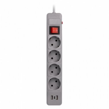 Сетевой фильтр c USB+Type C, 16А, 4 гнезда, c з/ш, с з/к, ПВС, 3 м, серый (SBSP-30C-G)