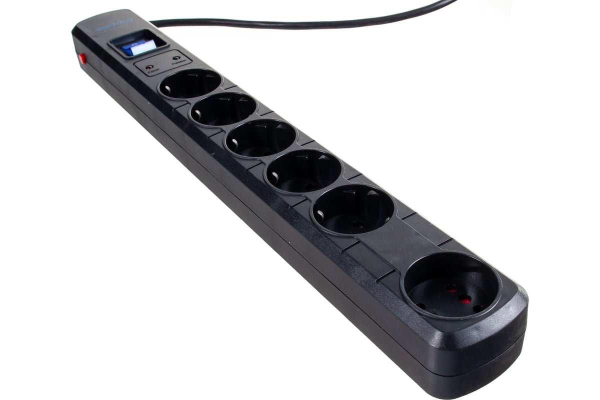 Удлинитель с функцией сетевого фильтра Smartbuy на 6 розеток для подключения широкого спектра компьютерной, офисной и бытовой техники к электросети 220В.