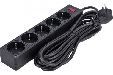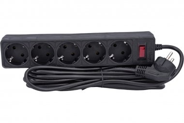 Сетевой фильтр Smartbuy, 10А, 2200 Вт, 5 гнезд, без з/ш, земля, ПВС 3x0,75, 5 м., черный (SBSP-50-K)