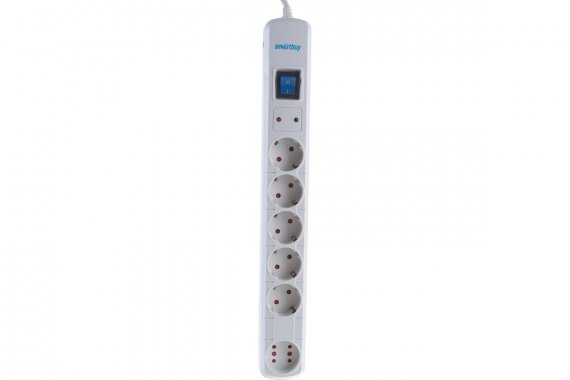 Удлинитель с функцией сетевого фильтра Smartbuy на 6 розеток для подключения широкого спектра компьютерной, офисной и бытовой техники к электросети 220В.