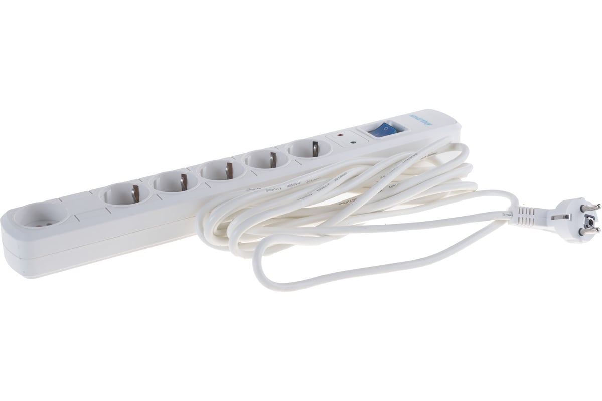 Сетевой фильтр Smartbuy, 16А, 3500 Вт, 6 гнезд, с з/ш, земля, ПВС, 5 м, белый (SBSP-50W-Pro)