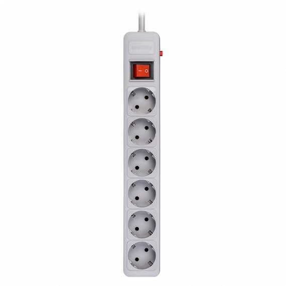 SMARTBUY предлагает сетевой фильтр мощностью 3500 Вт и силой тока 16А. Этот удлинитель имеет 6 гнезд и выполнен в сером цвете. Длина кабеля составляет 1.8 метра.
