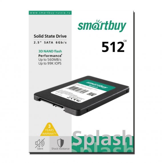 SmartBuy Splash SSD представляет собой твердотельный накопитель объемом 512 гигабайт, основанный на технологии TLC NAND Flash, и обеспечивает быстрый доступ к данным благодаря поддержке интерфейса SATA III. Он идеально подходит в качестве альтернативы традиционным жестким дискам, так как обладает высокой производительностью и надежностью.Твердотельное компьютерное запоминающее устройство на основе микросхем памяти, предназначенное для хранения данных. Не содержит подвижных механических частей. Бесшумное и устойчивое к вибрациям. Является полноценной заменой HDD. Совместимо с интерфейсом Serial ATA.
