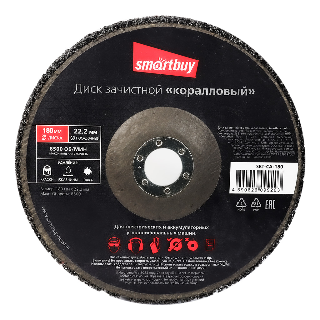 Диск зачистной 180 мм, коралловый, Smartbuy tools