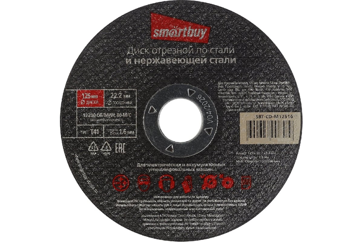 Диск отрезной по металлу 125 мм, толщина 1.6 мм, Smartbuy tools