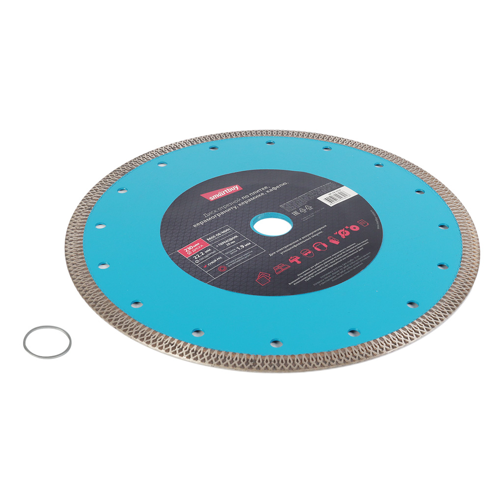 Диск алмазный по керамограниту тонкий Smartbuy предназначен для резки отделочных материалов, таких как: керамогранит, гранит, керамическая плитка, натуральный камень, и подходит как для бытового, так и промышленного применения. Отличается высокой скоростью работы и высокой точностью реза, оставляя после работы минимальное кол-во сколов и повреждений.