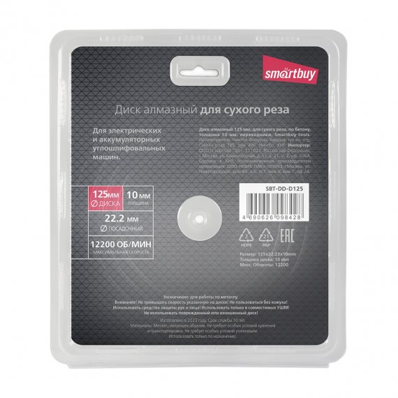 Smartbuy SBT-DD-D125 Диск алмазный 125 мм, для сухого реза, по бетону, толщина 2мм