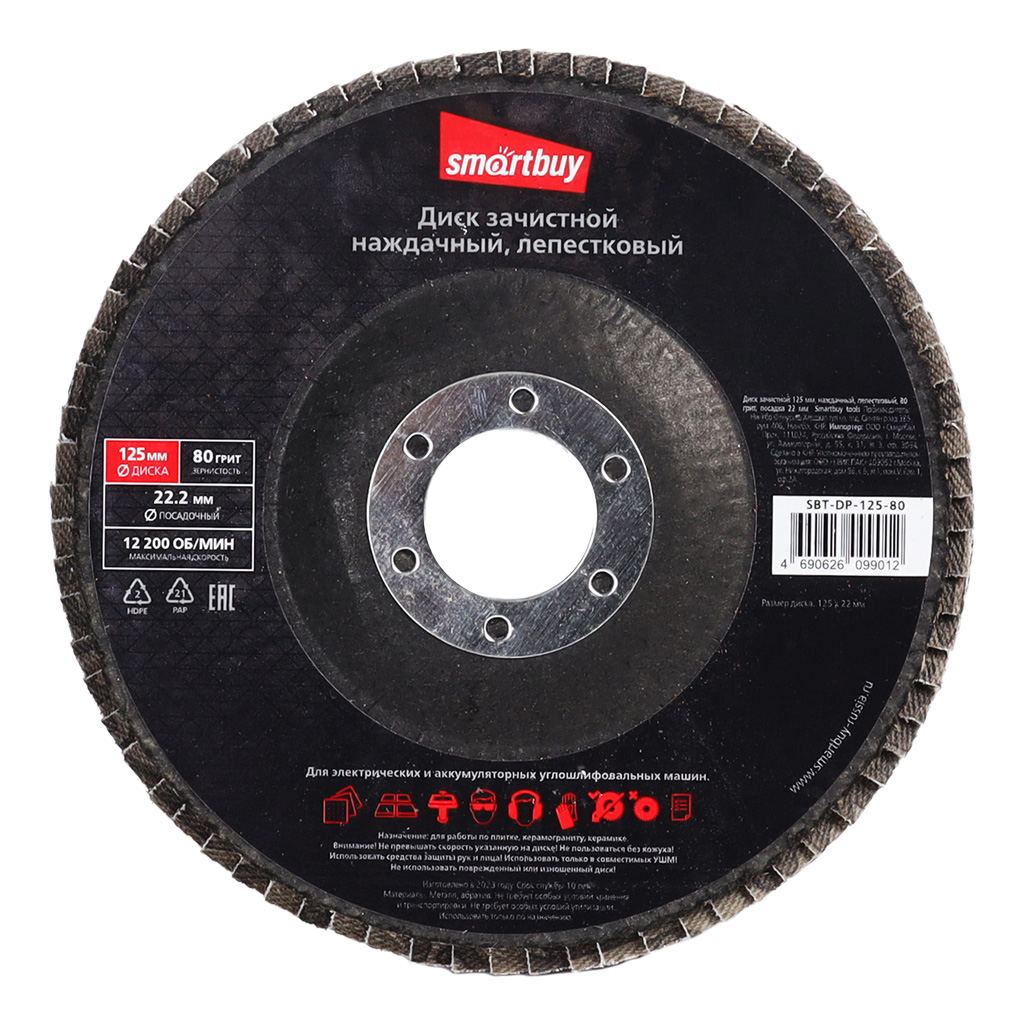 Диск зачистной 125 мм, наждачный, лепестковый, 80 грит, посадка 22 мм Smartbuy tools