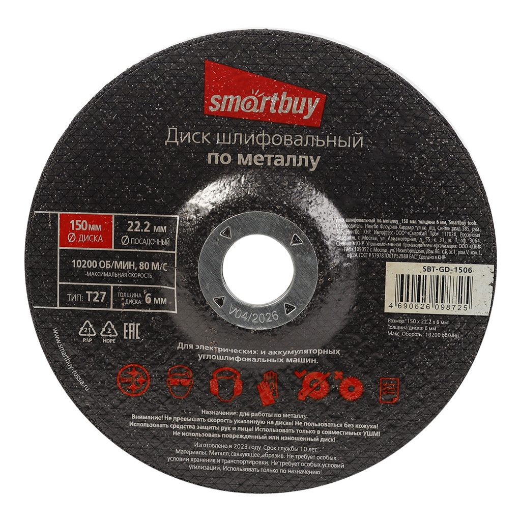 Диск шлифовальный по металлу 150 мм, толщина 6 мм, Smartbuy tools