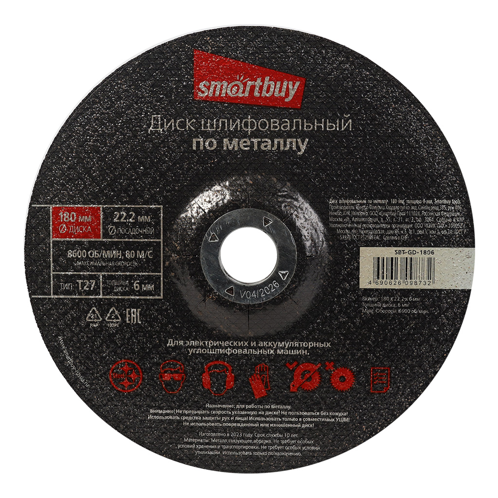 Диск шлифовальный по металлу 180 мм, толщина 6 мм, Smartbuy tools