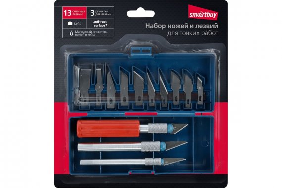 Набор ножей для резьбы, для точных работ,хобби, творчества,13 лезвий,3 ручки,кейс Smartbuy tools/80
