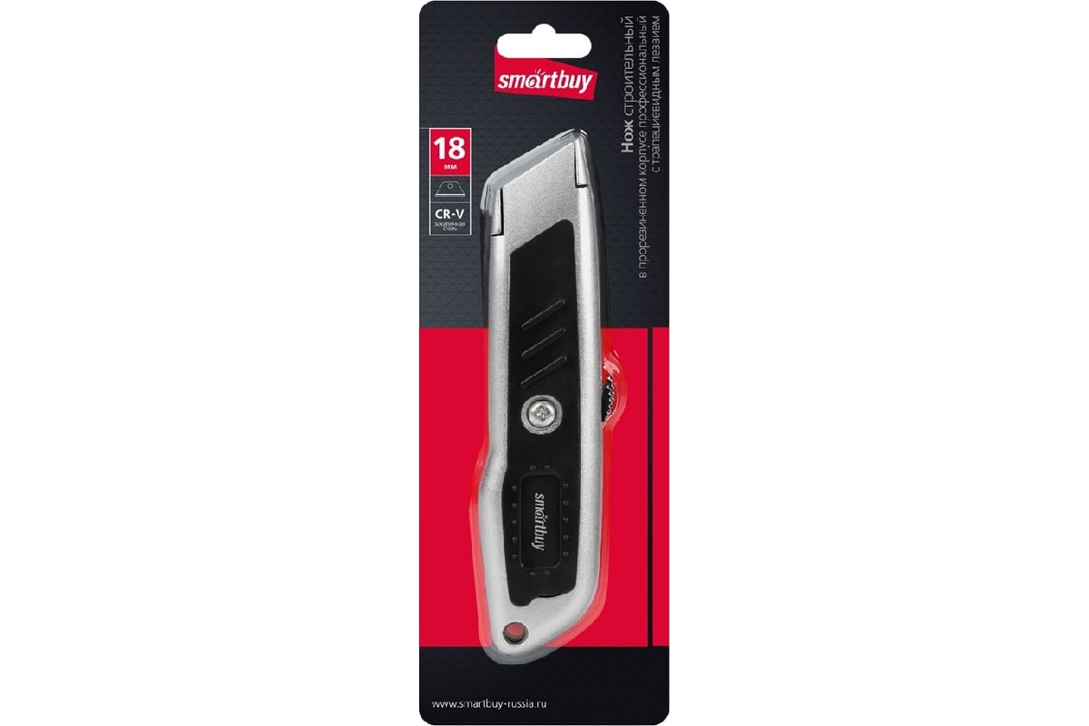 Строительный нож,трапециевидное лезвие,прорезиненный стальной корпус,Smartbuy Tools/144SBT-KNT-18P2