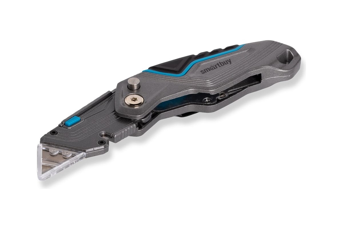 Строительный нож, трапециевидное лезвие, складной, прорезин., 3 сменных лезвия, Smartbuy Tools