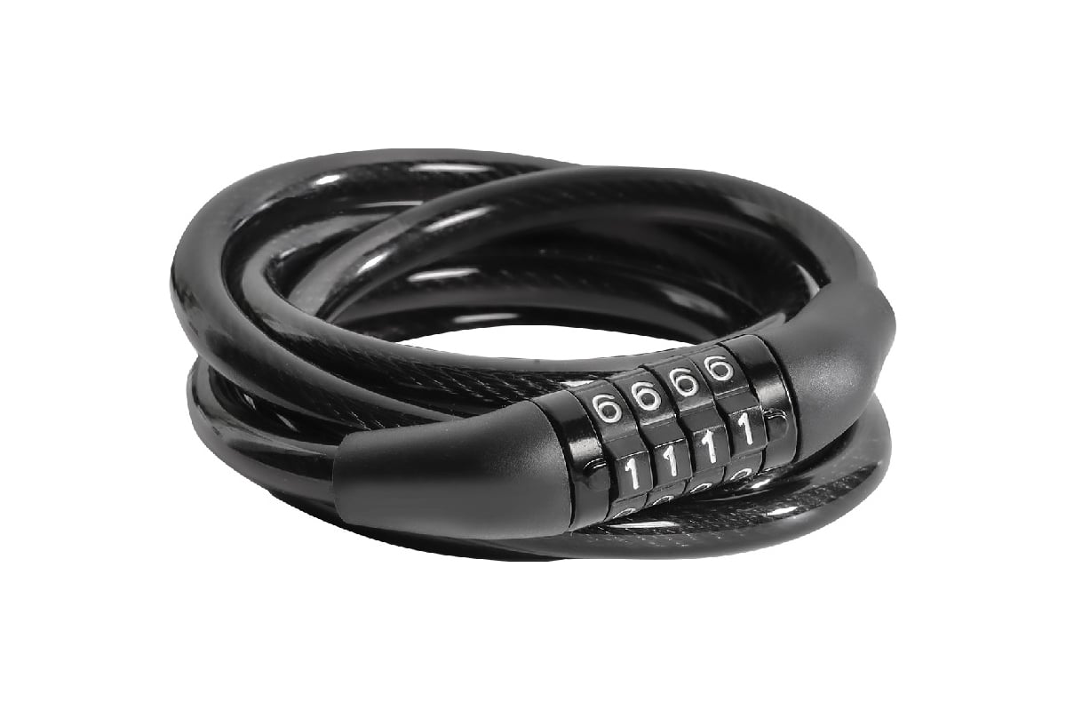 Универсальный тросовый замок для крепления велосипеда или иного имущества за столб, парковку. Защищает от кражи без специальных инструментов. Пароль замка настраиваемый. По умолчанию 0-0-0-0. Для смены требуется в открытом положении провернуть черное кольцо по часовой стрелке, и в повернутом положении сменить комбинацию, после чего вернуть кольцо в исходное положение.