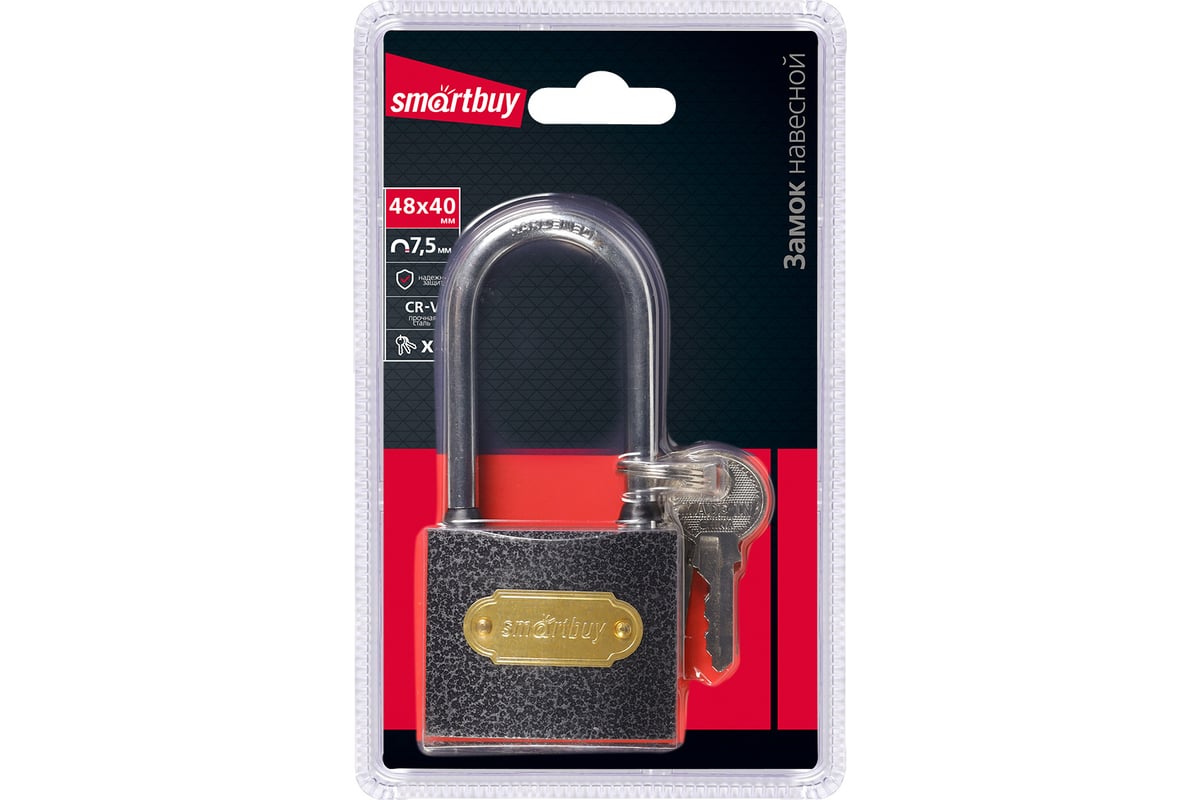 Smartbuy SBT-LK-4840L Замок навесной, корпус 48*40 мм, удлиненная дужка d7.5 мм
