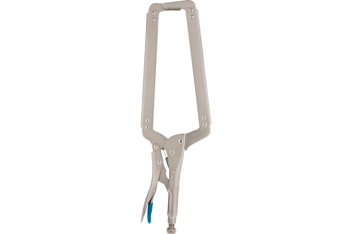 Ручной зажим Smartbuy 450 мм используется для фиксации заготовок во время выполнения сварочных работ, сборке мебели и ремонте автомобиля. Фиксация осуществляется путем сжатия рукояток инструмента за счет особой конструкции блокирующего механизма. Поверхность губок закалена, что обеспечивает прочность и долговечность. С помощью специального винта можно отрегулировать усилие прижима соединяемых деталей, имеющих разную толщину.