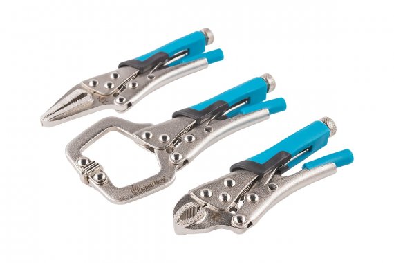Набор ручных зажимов Smartbuy используется для фиксации заготовок во время выполнения сварочных работ, сборке мебели и ремонте автомобиля. Фиксация осуществляется путем сжатия рукояток инструмента за счет особой конструкции блокирующего механизма. Поверхность губок закалена, что обеспечивает прочность и долговечность. С помощью специального винта можно отрегулировать усилие прижима соединяемых деталей, имеющих разную толщину.