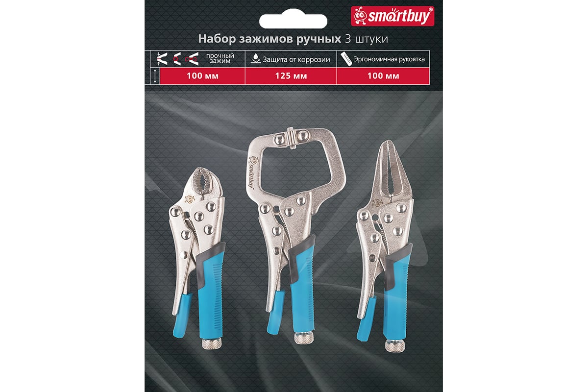 Набор зажимов ручных металлических, 3 шт, 100-125 мм, Smartbuy tools