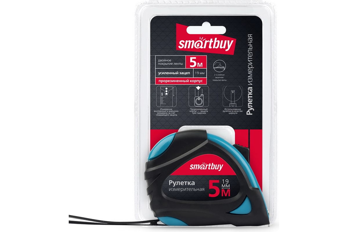 Smartbuy SBT-MTP-519P2 Рулетка измерительная, 5мх19мм, прорезиненный корпус