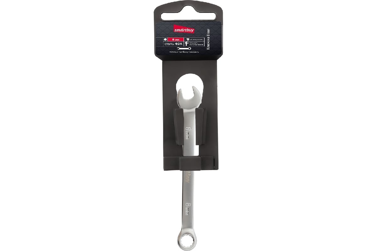 Ключ комбинированный на 8 мм, хромированный, 40X, Smartbuy tools