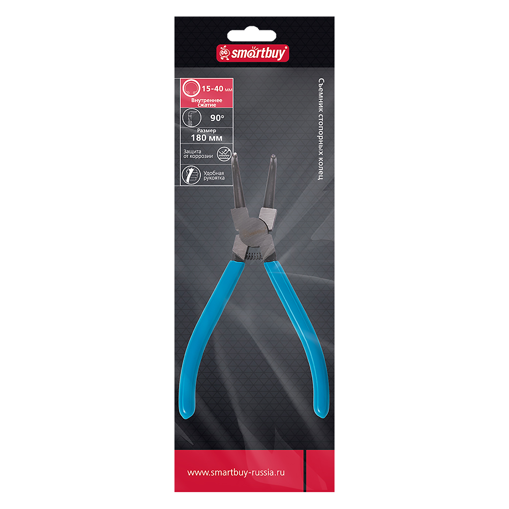 Съемник стопорных колец 180 мм, внутр.сжатие, 90 град.,для колец 15-40 мм, Smartbuy Tools