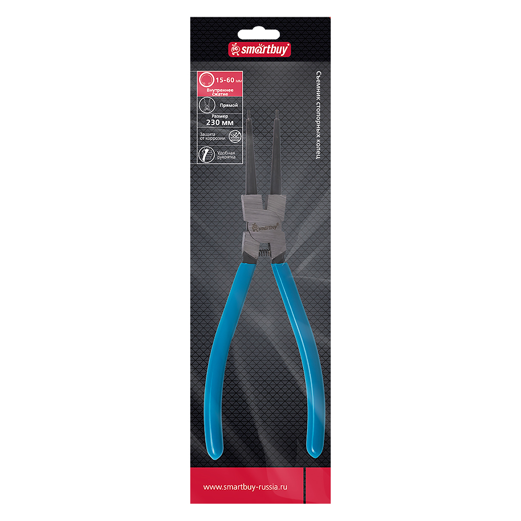 Съемник стопорных колец 230 мм, внутр.сжатие, прямой,для колец D15-60 мм, Smartbuy Tools