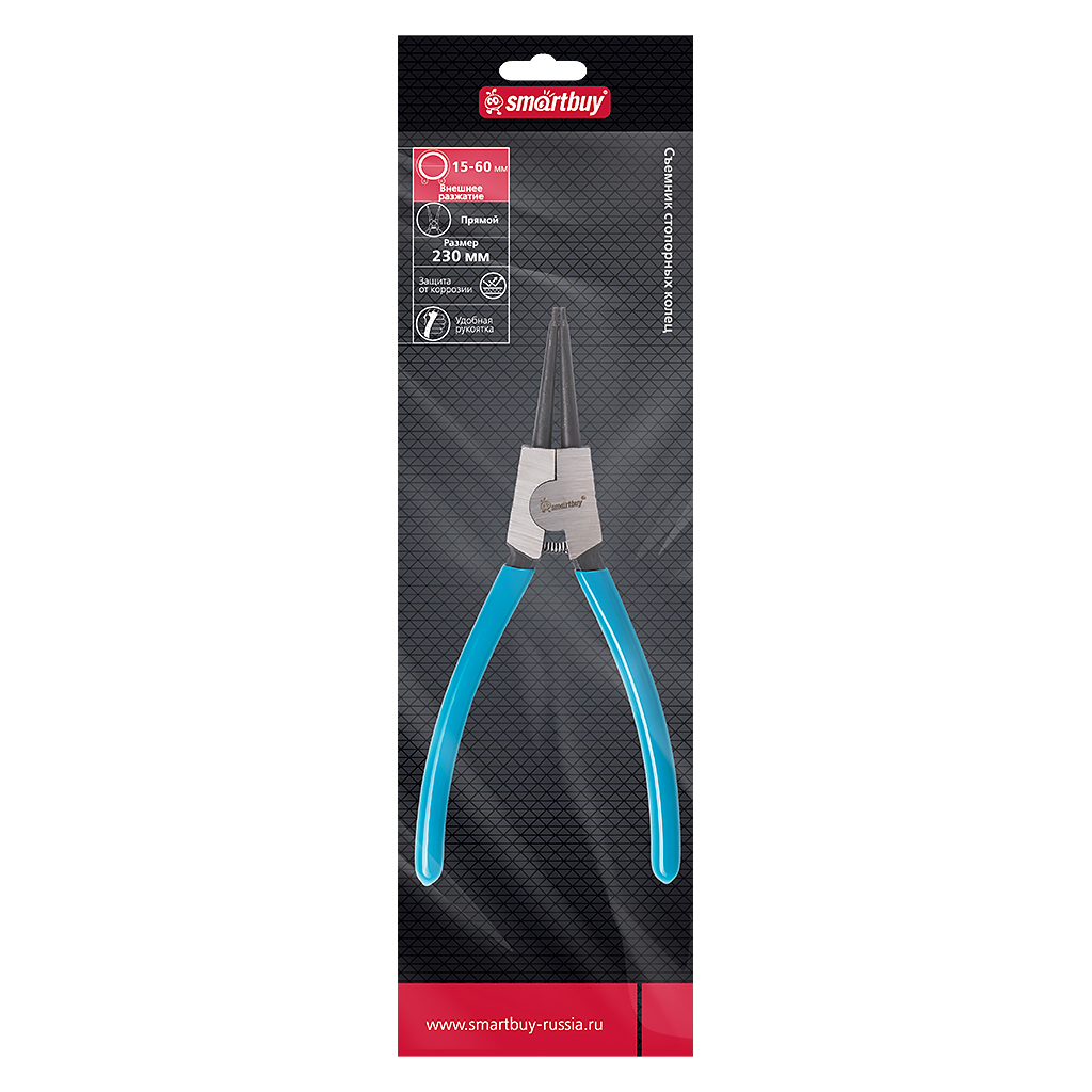 Съемник стопорных колец 230 мм, внешн.разжатие, прямой, для колец 15-60 мм, Smartbuy Tools