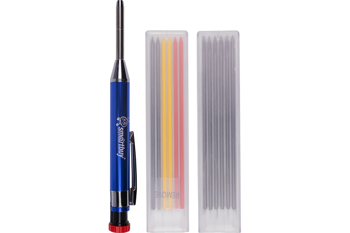 Чертилка/карандаш (скрайбер), набор ручка и 12 грифелей, 6 черн, 3x2 цветных, Smartbuy Tools