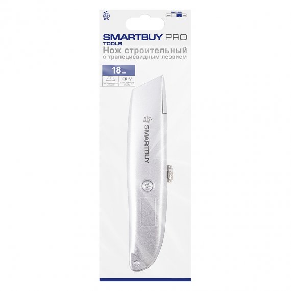 Нож с трапециевидным сменным лезвием, строительный, 18 мм, алюминиевый, Smartbuy PRO TOOLS (SBT-PRO-