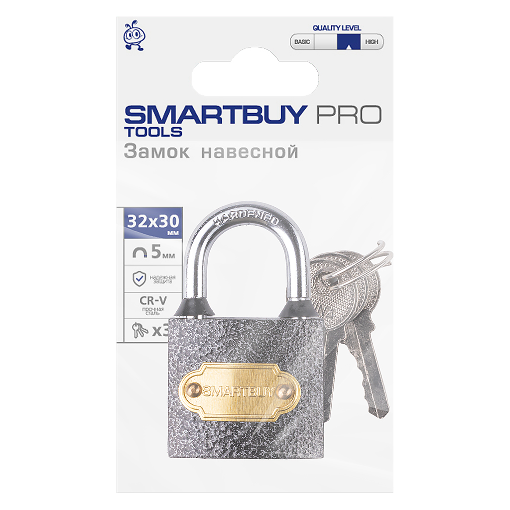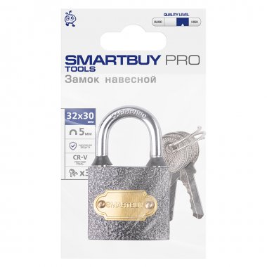 Замок 32 мм х 30 мм, диаметр дужки 5 мм, 3 ключа, Smartbuy PRO TOOLS (SBT-PRO-LK-3230)