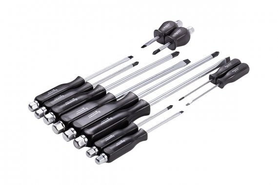 Ударные отвертки для восстановления залитых клеем или краской шлицов, приложения больших усилий, использования отвертки как долото. Рукоятки изготовлены из маслобензостойкого полипропилена, а жало отвертки из хром-ванадиевой стали.