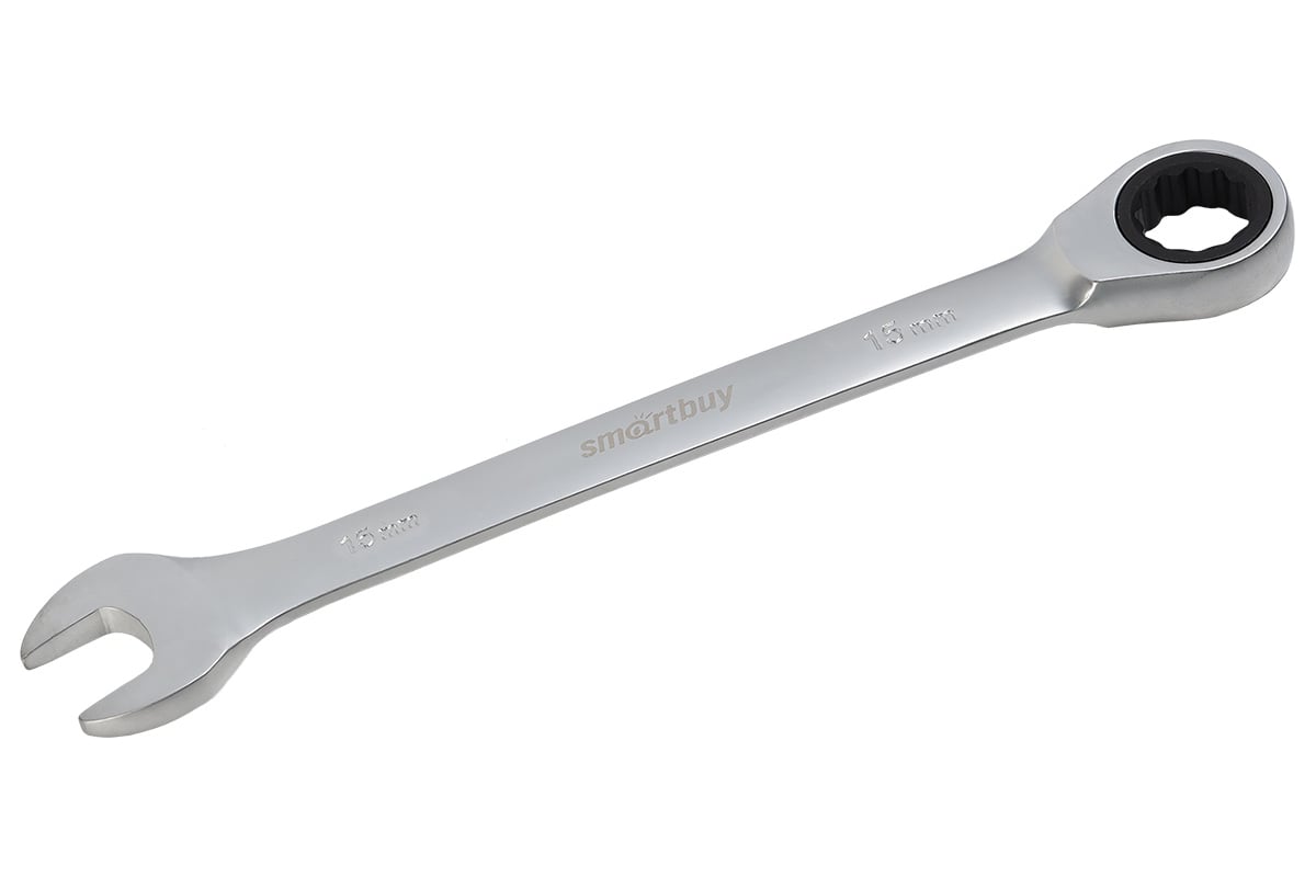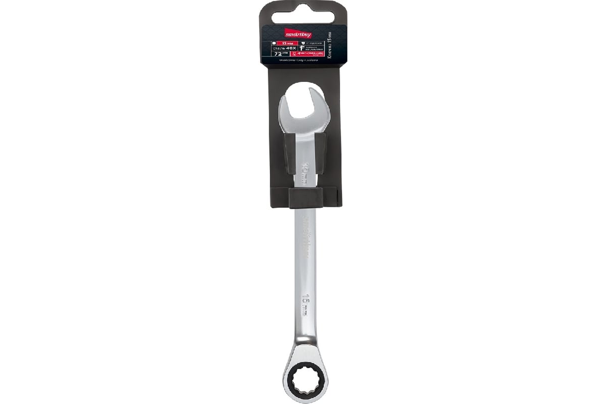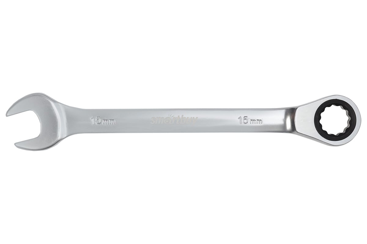 Ключ комбинированный с трещоткой на 15 мм, хромированный, 40X, Smartbuy tools