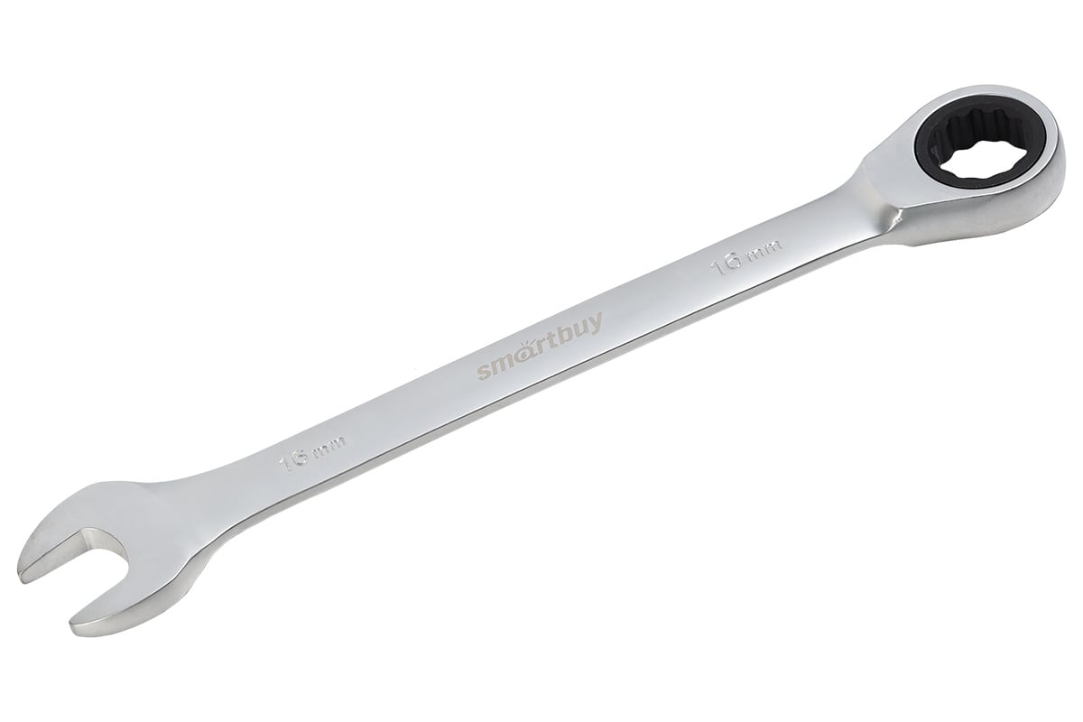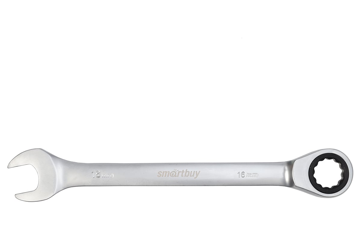Ключ комбинированный с трещоткой на 16 мм, хромированный, 40X, Smartbuy tools