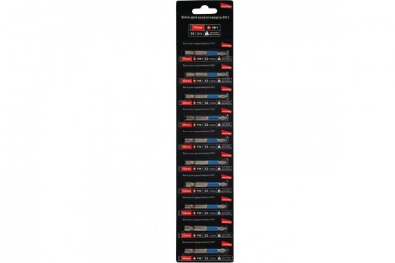 Изготовлены из стали тип S2. Благодаря этой стали, биты обладают повышенной стойкостью к повреждениям, и наделены большим сроком службы. На битах есть насечка для защелкивания в патронах.