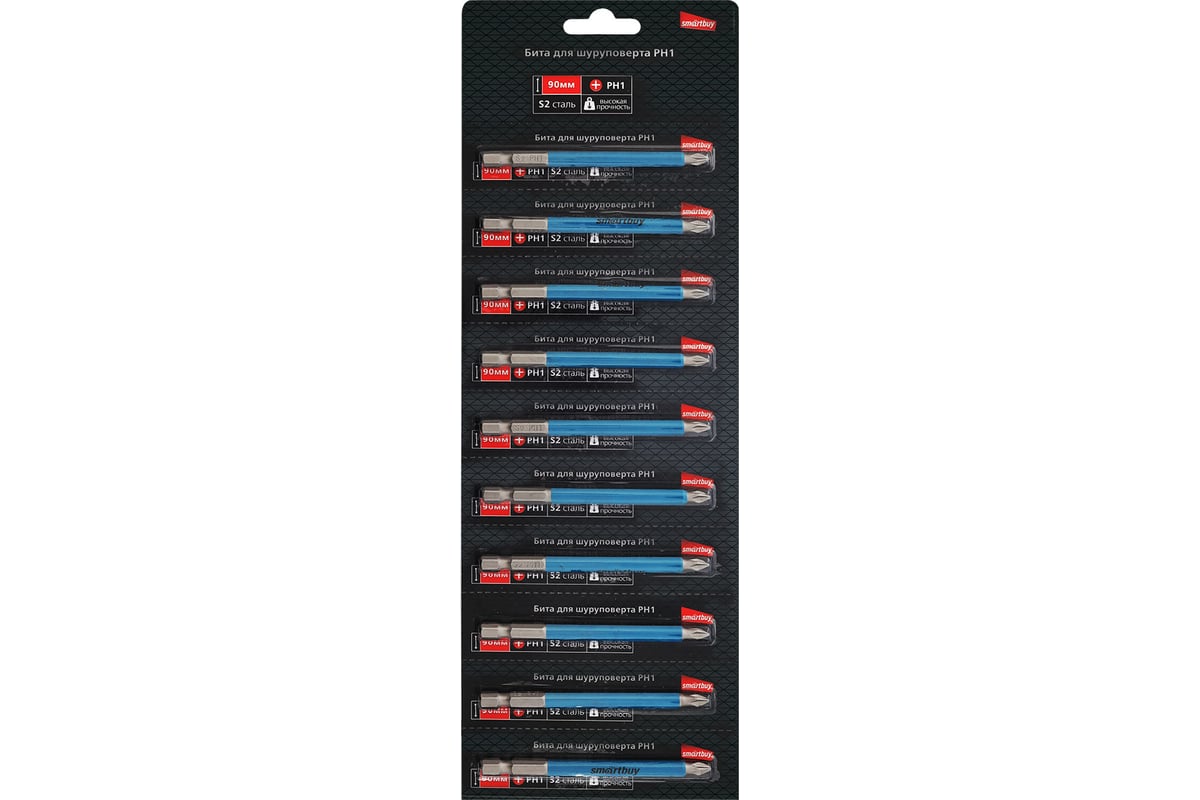Бита для шуруповерта PH1 длина 90 мм, материал S2, Smartbuy tools (лента-10 шт)